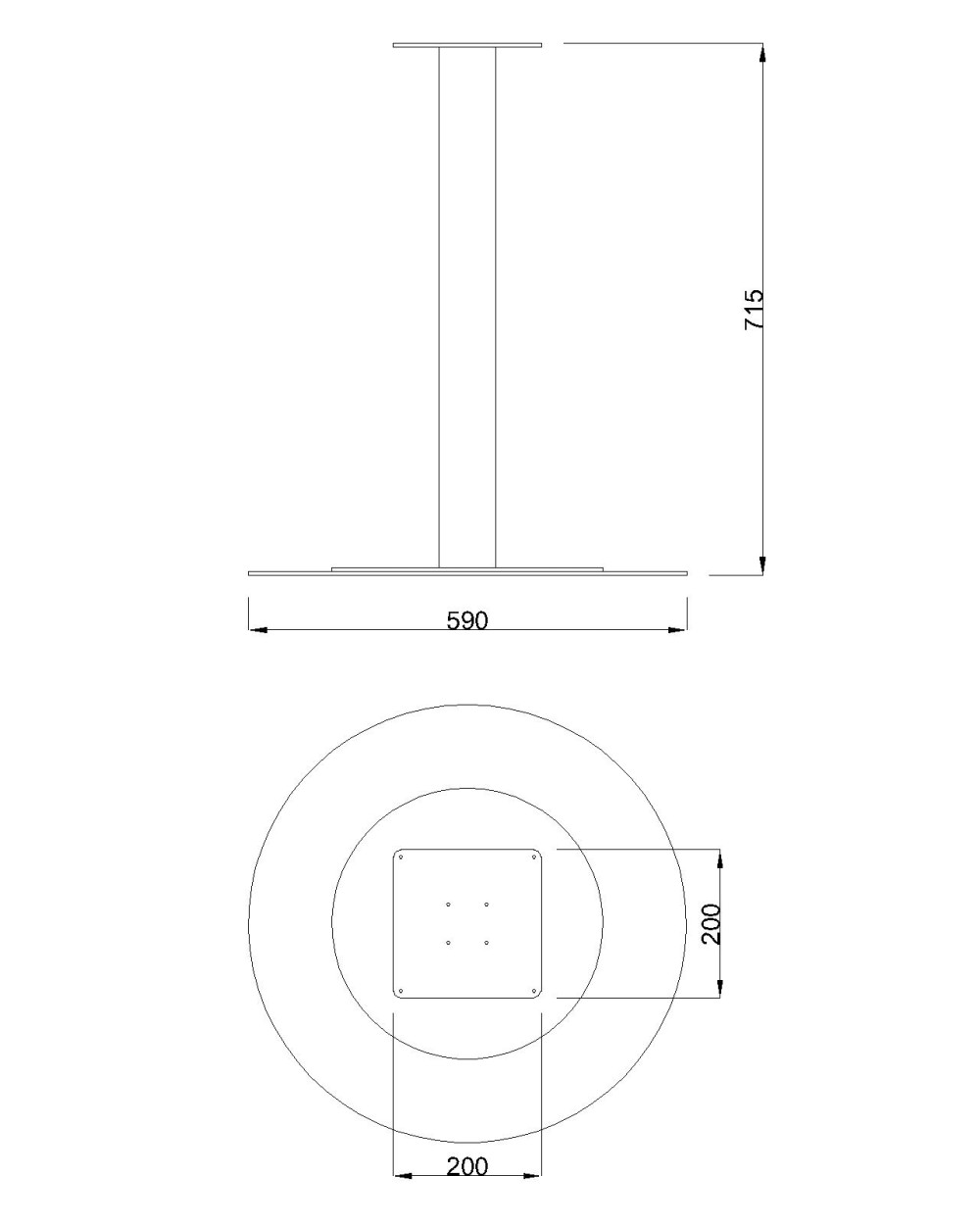 Központi asztallábazat gömbölyű (a láb profilja átm. 70 mm)Szín RAL 9005 az asztallap max. átm. 1000 mm vagy 800x800 mm Méret: átm. 590x715H